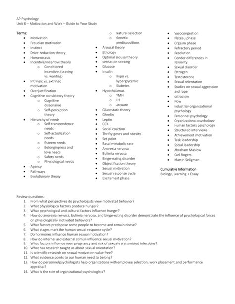 Read Psychology Motivation And Work Study Guide Answers Epub